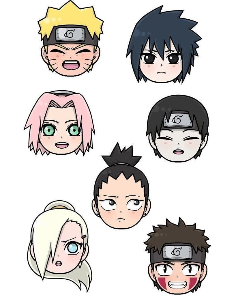 ![Чиби головы персонажей аниме Наруто]()