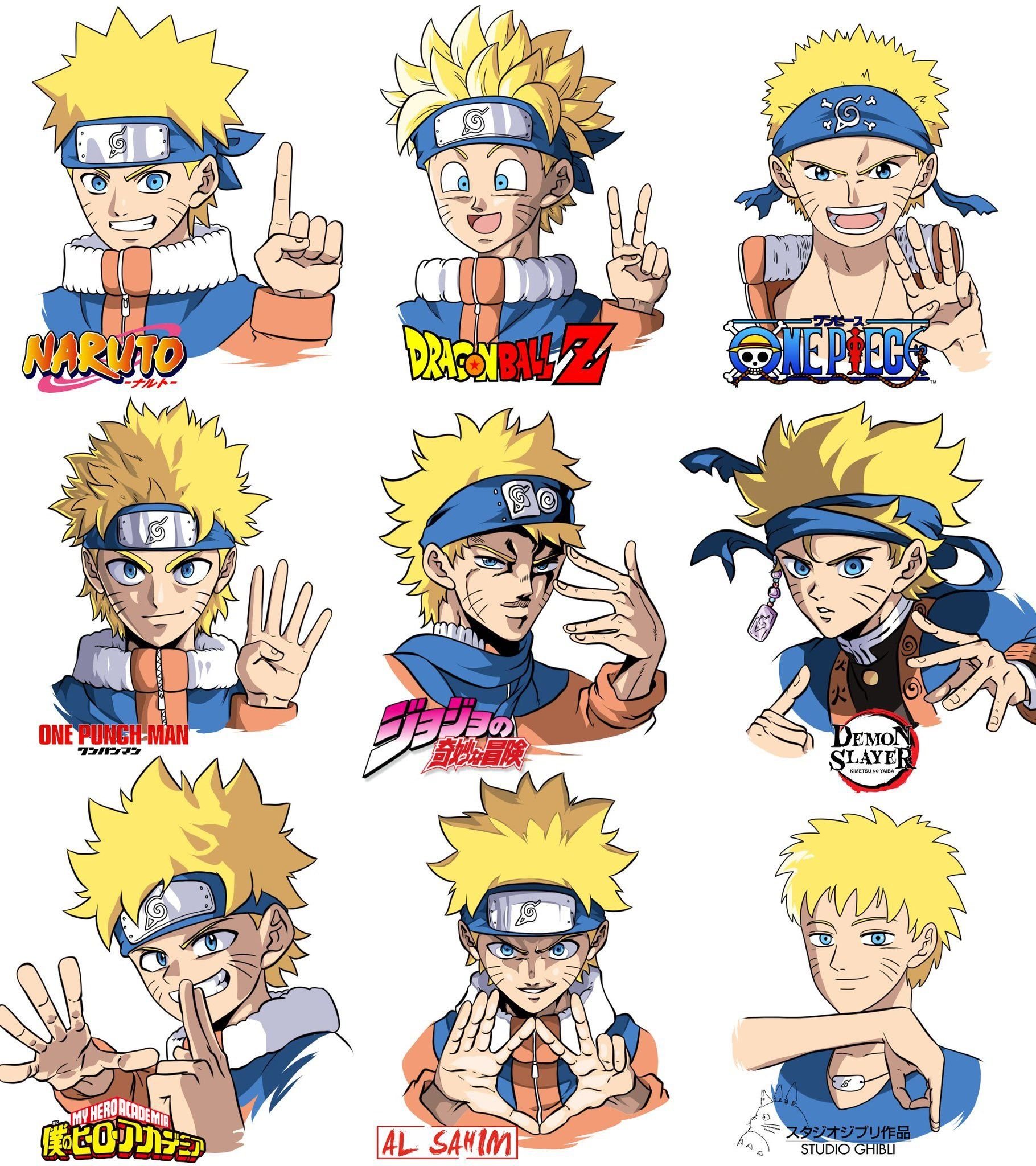 ![Наруто в разных стилях рисовки]()