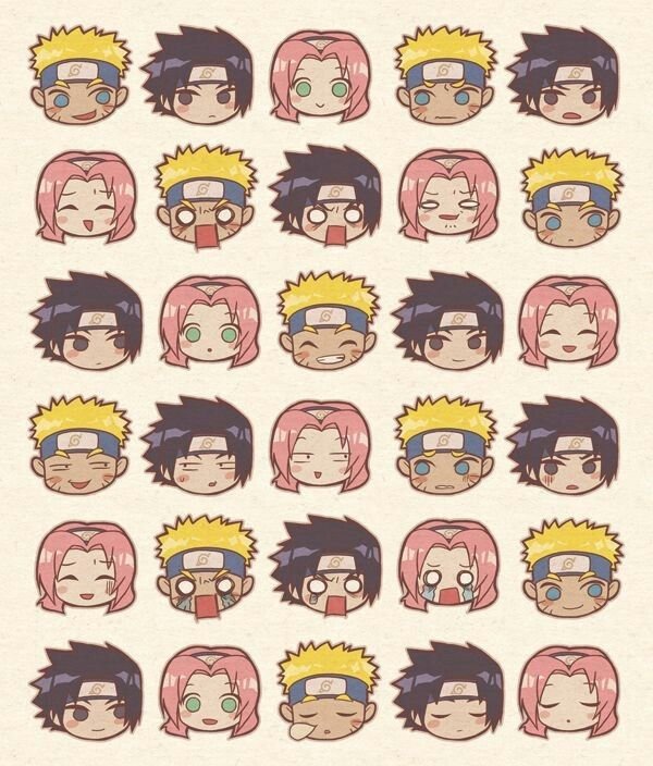 ![Чиби аниме Наруто головы всех персонажей]()