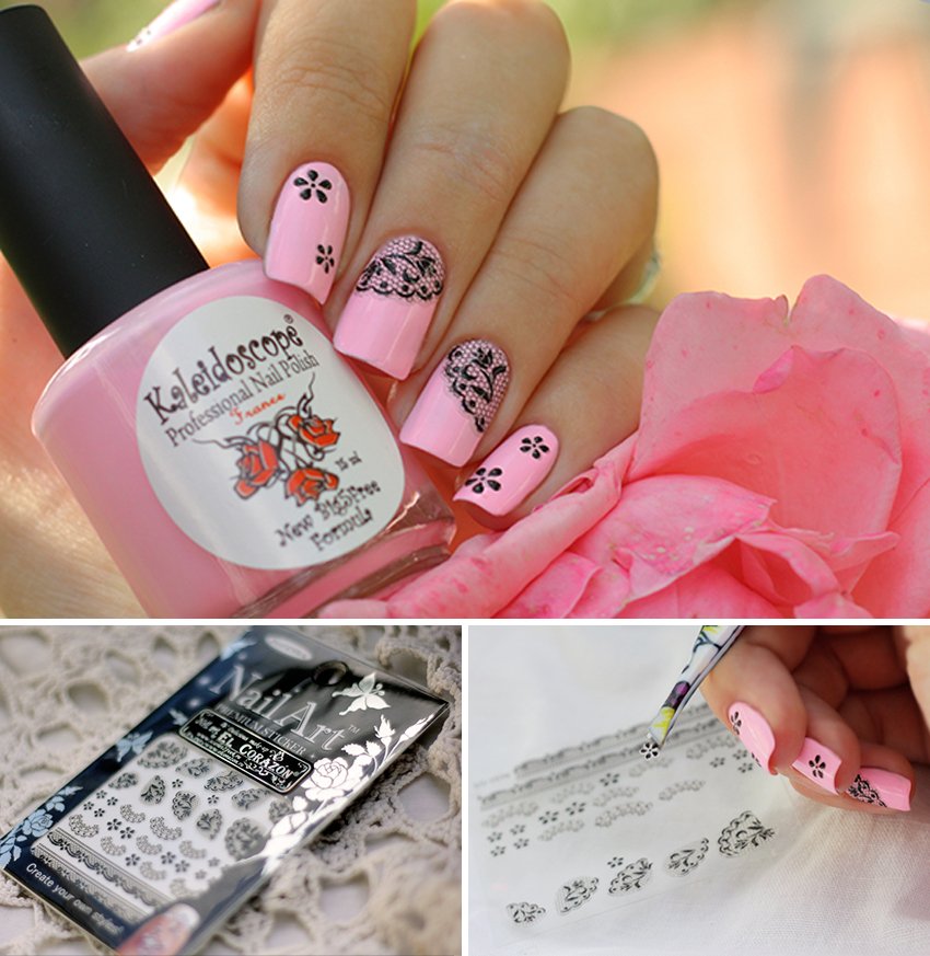 ![Красивый маникюр с наклейками]()