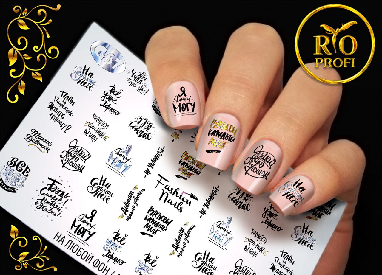 Ногти с наклейками надписями