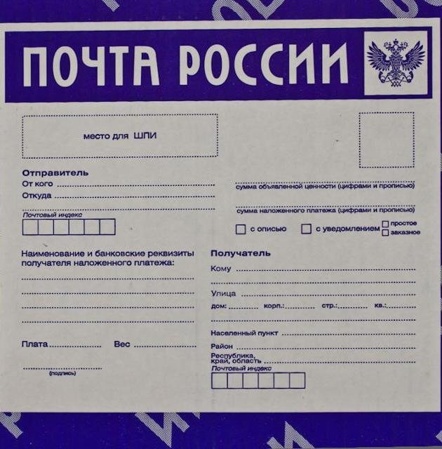 ![Образец заполнения посылки почта России]()