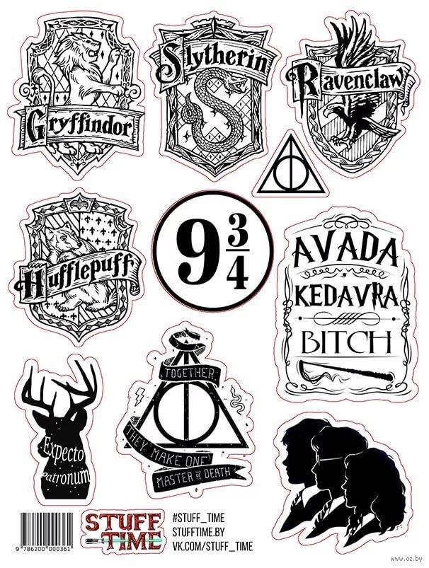 Гарри Поттер наклейки черно белые