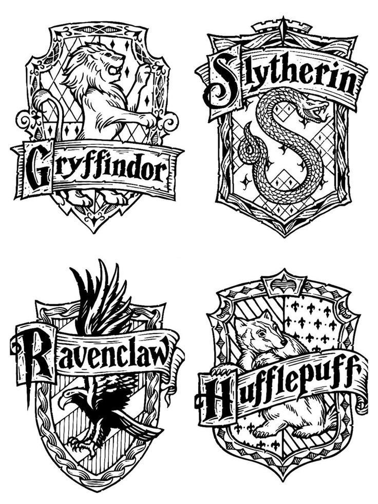 ![Значки Гарри Поттер черно белые]()