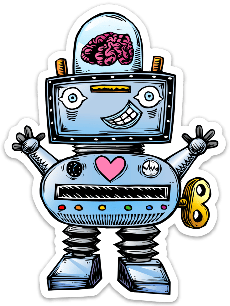 ![Робот стикер иллюстрация]()