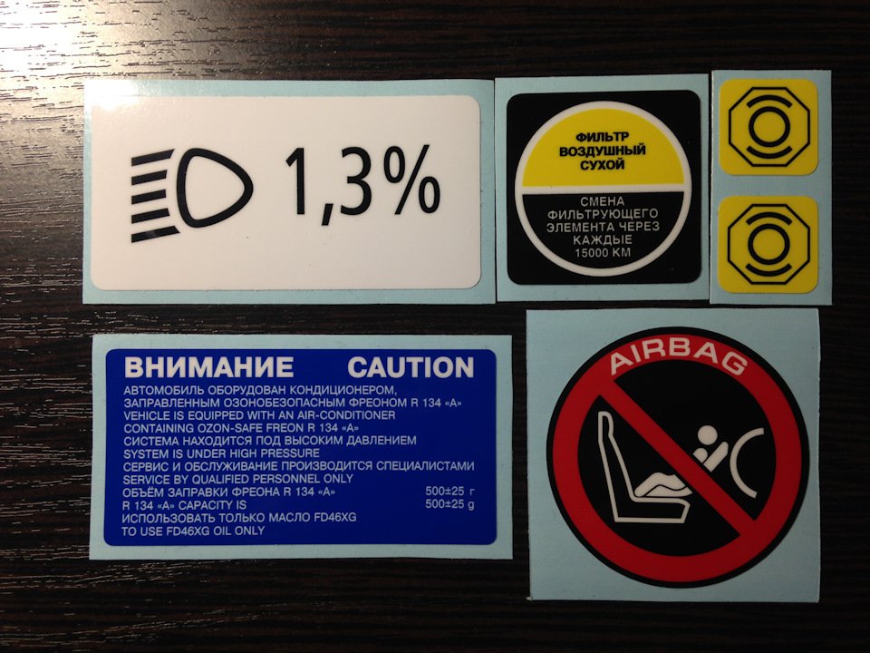 ![Заводские наклейки ВАЗ 2110 под капотом]()