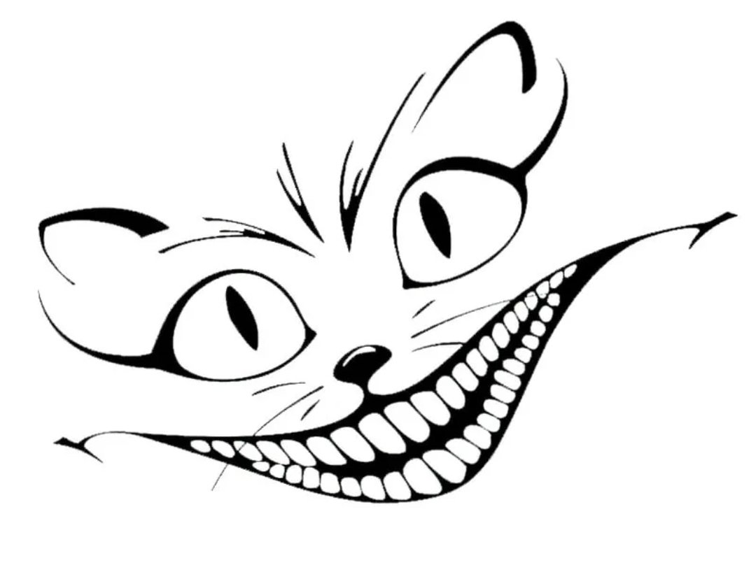 ![Чеширский кот раскраска]()