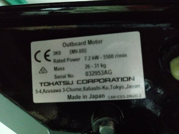 ![Шильдик на мотор Тохатсу 9.9]()
