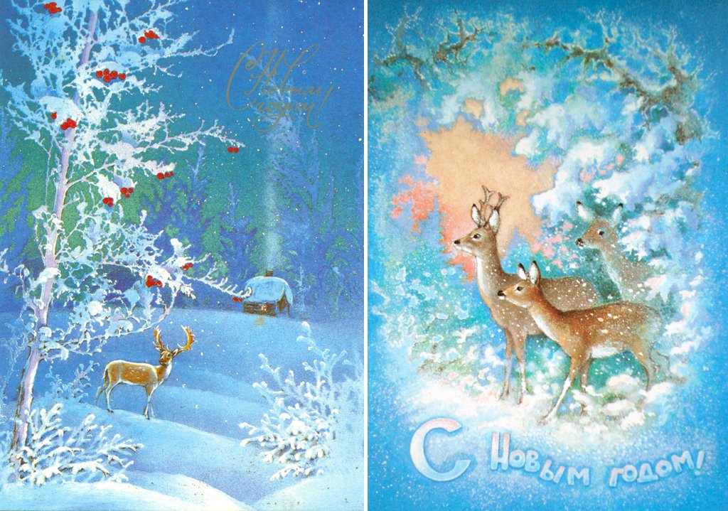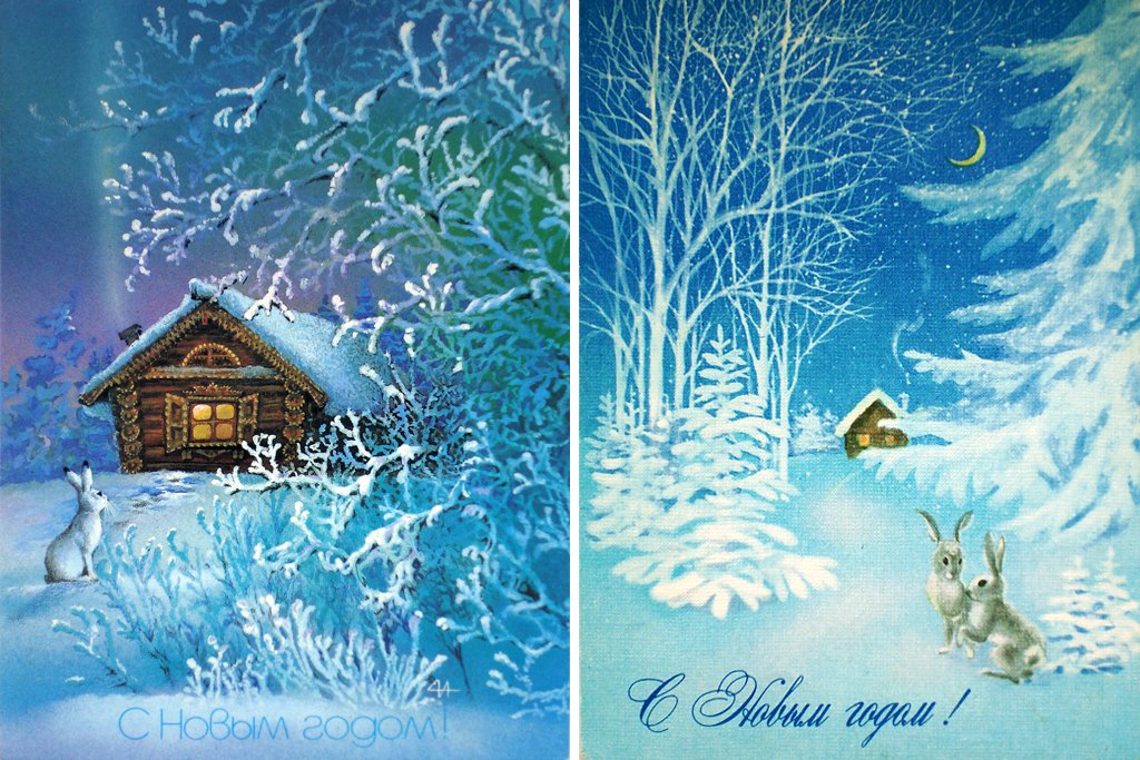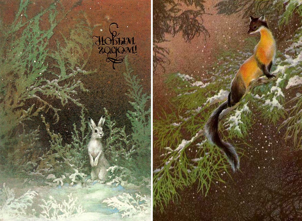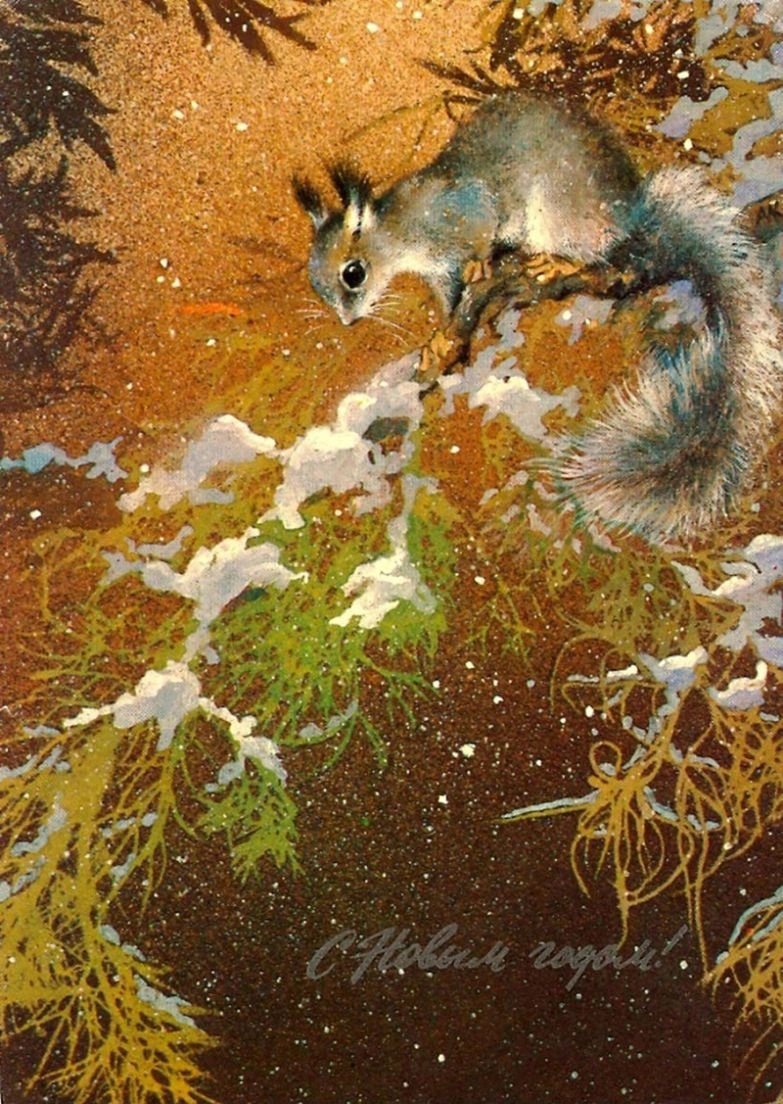 ![Новогодние открытки, художник Алексей Исаков]()