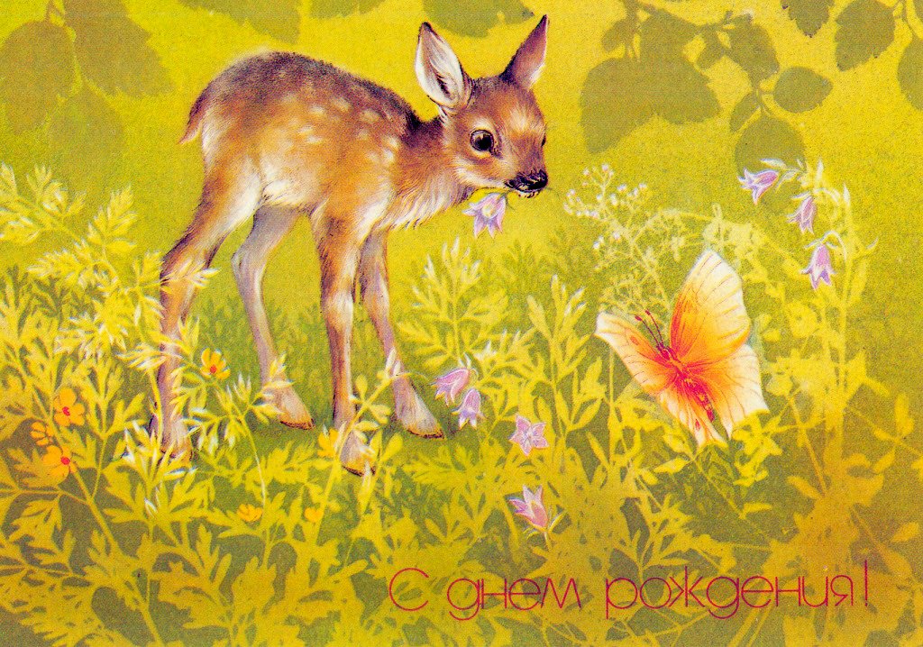 ![Олененок открытка]()