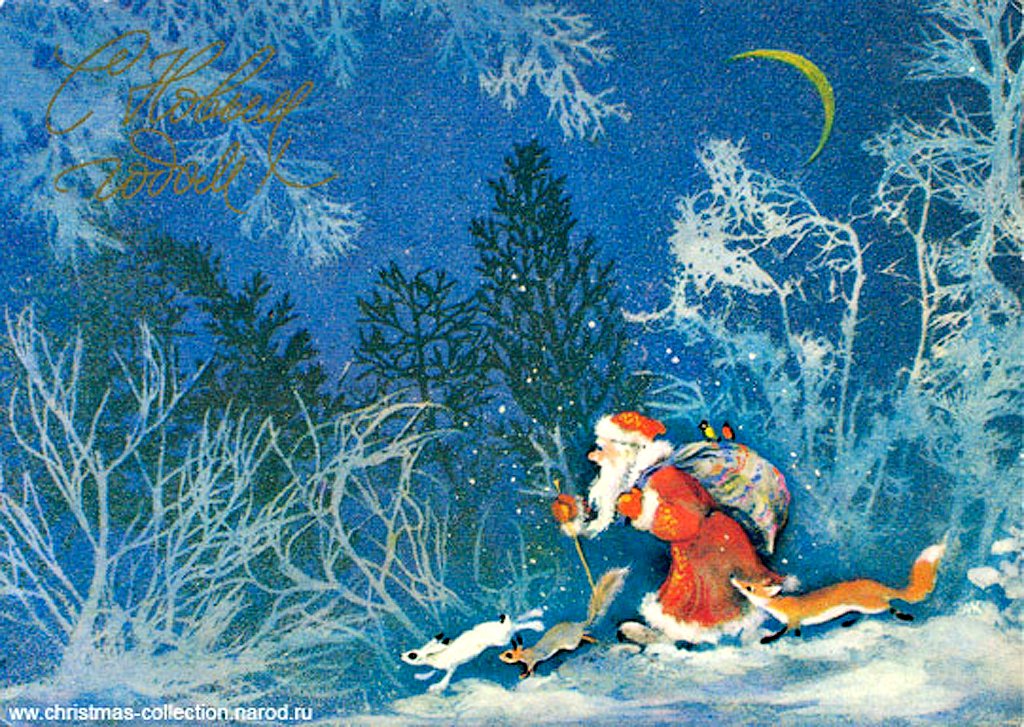 ![Новогодние открытки художника Исакова]()