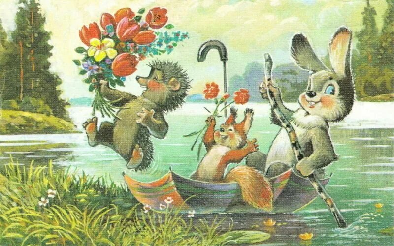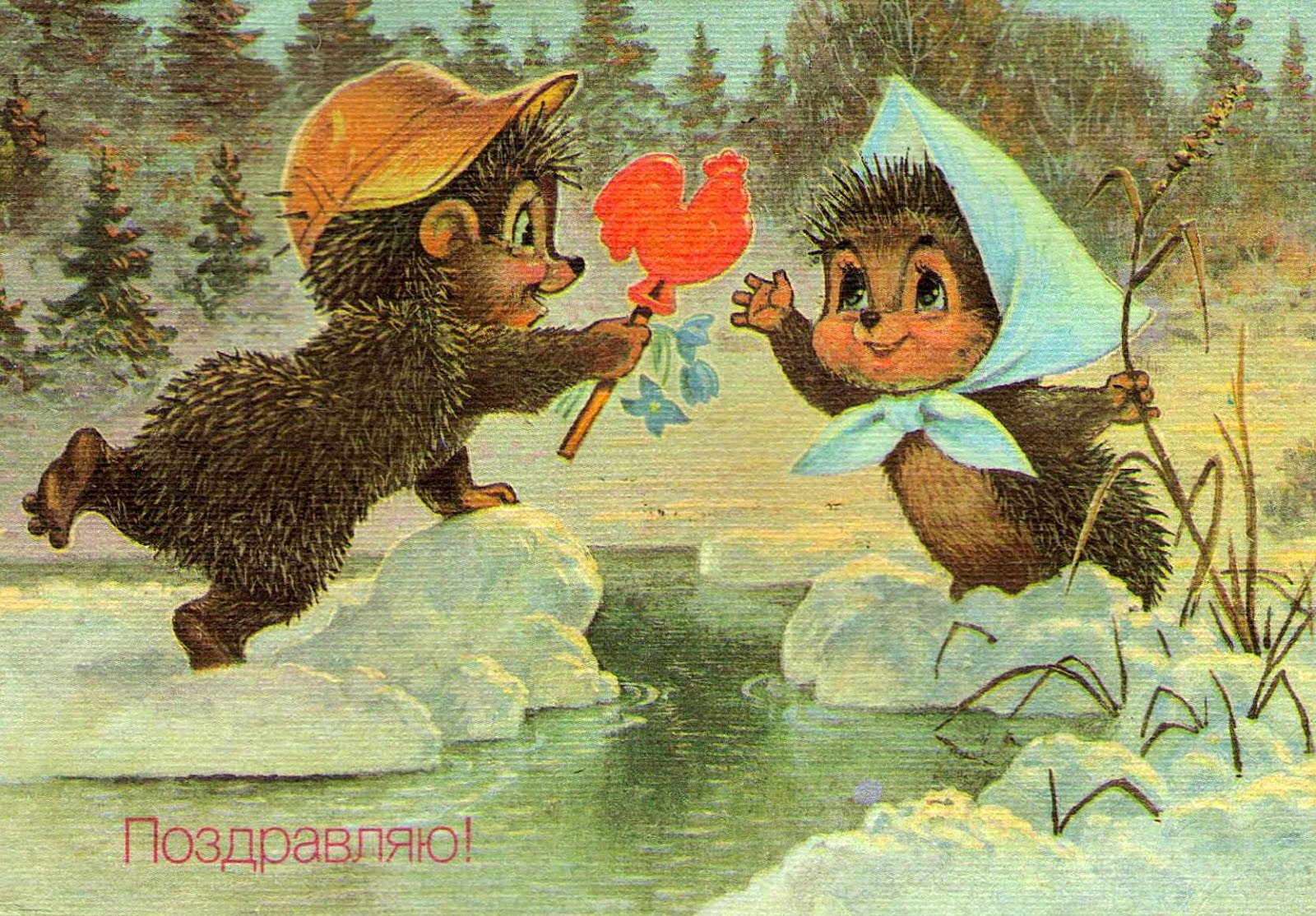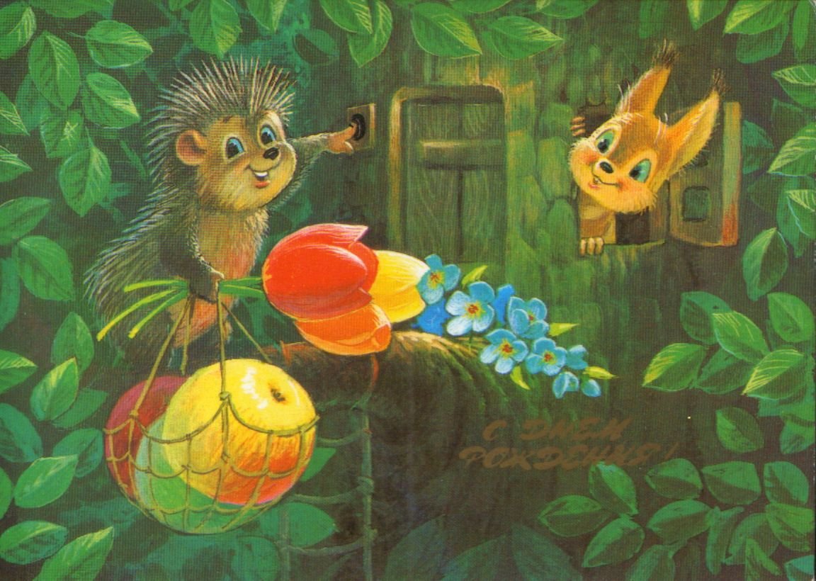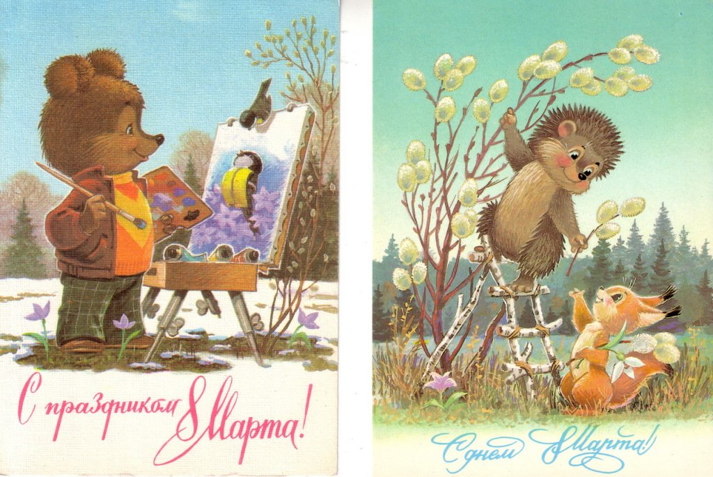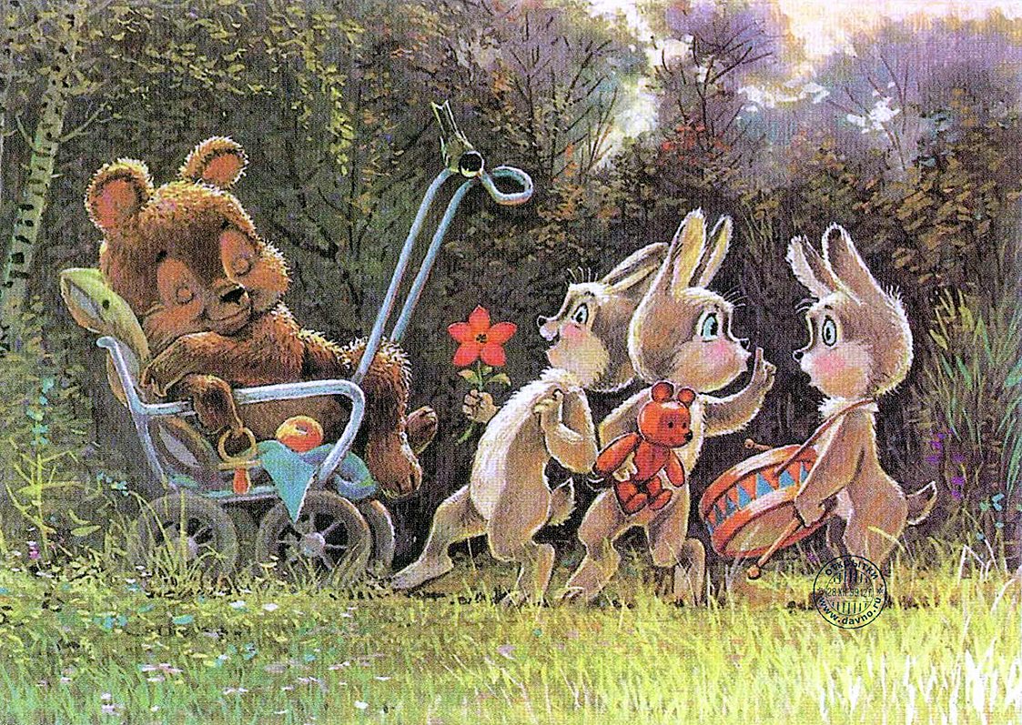 ![Советская открытка Медвежонок и Зайка Зарубин]()