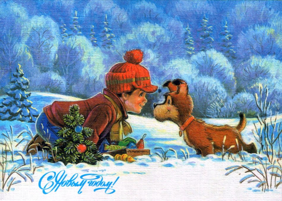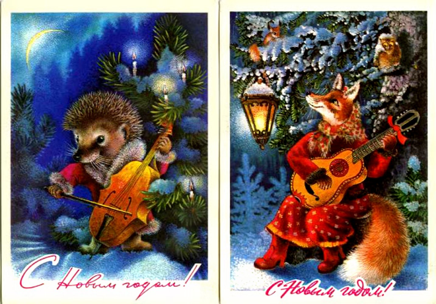 ![Открытки СССР новогодние художник Владимир Зарубин]()