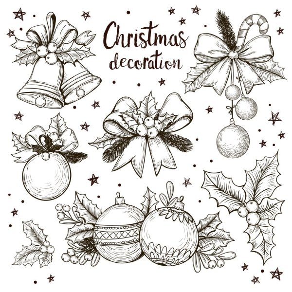 ![Новогодние элементы карандашом]()