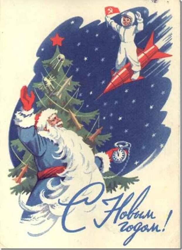 ![Новогодние открытки СССР художник Зарубин с ежиком]()