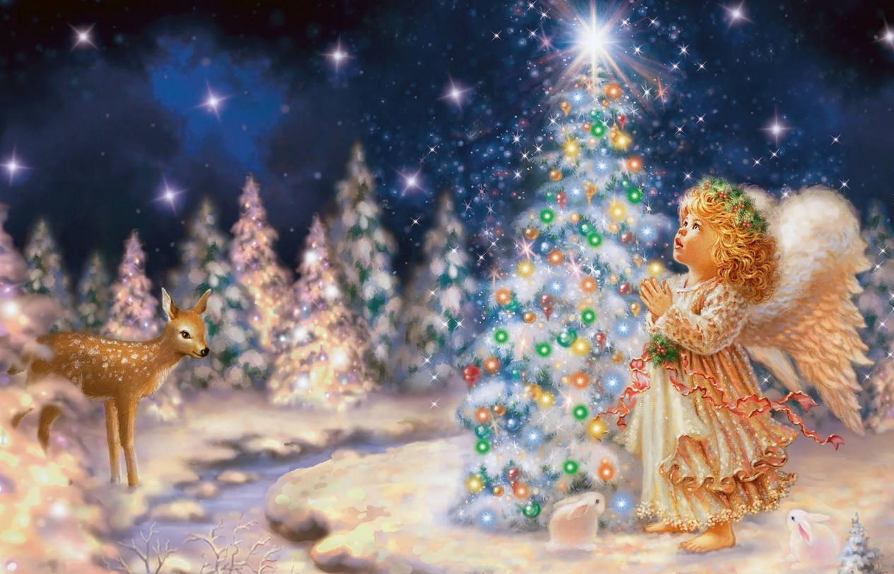 Открытки с Рождеством с ангелами