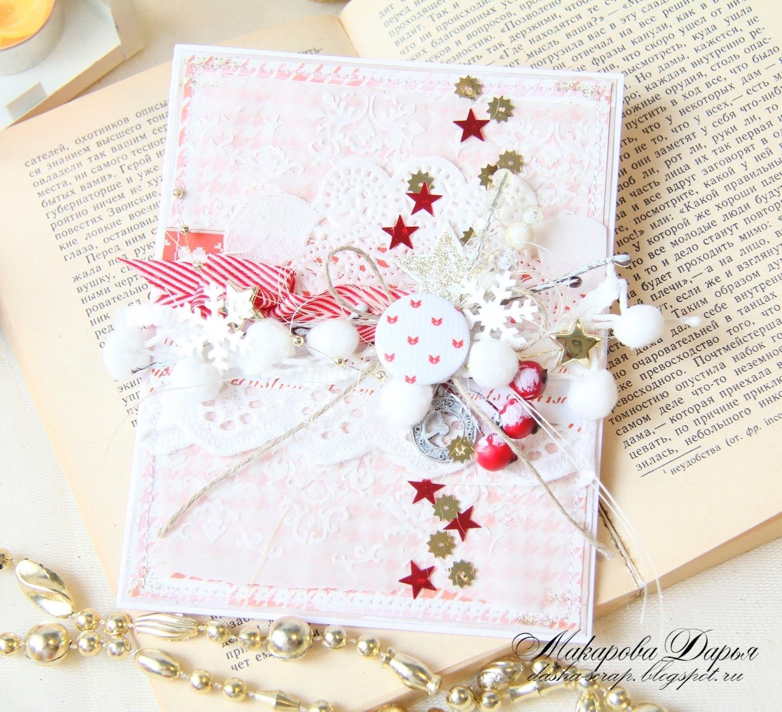 ![Новогодняя открытка Скрапбукинг для начинающих]()