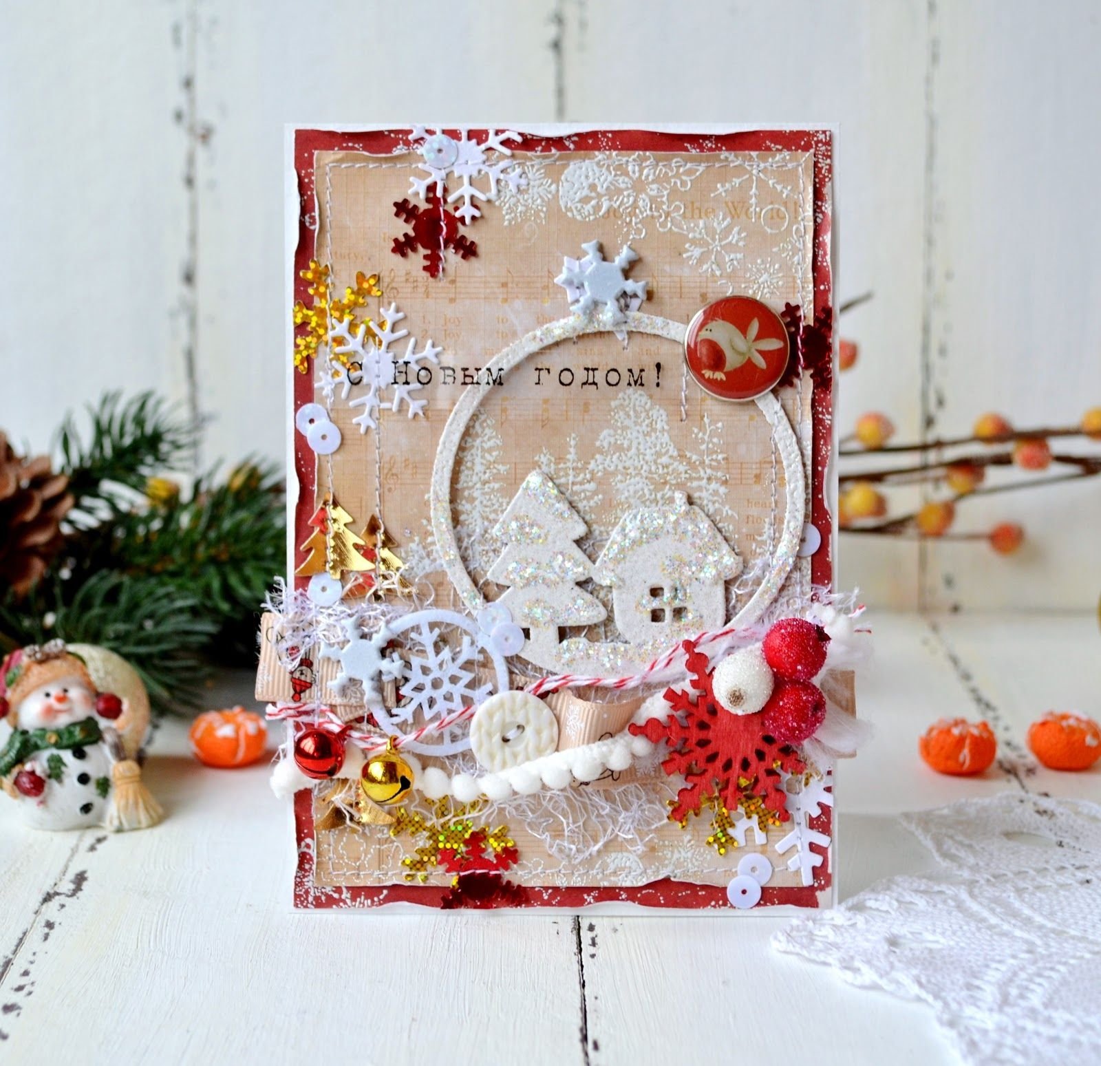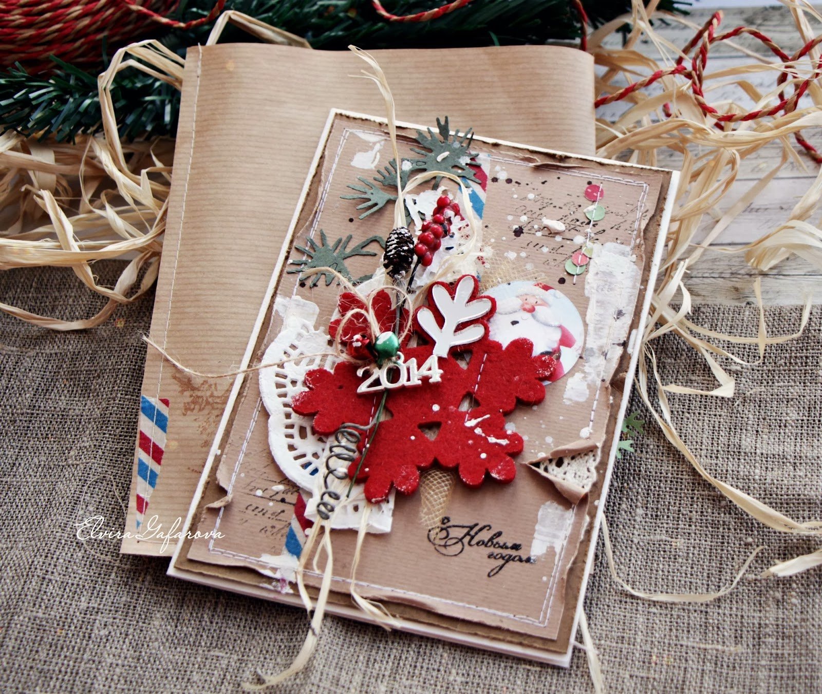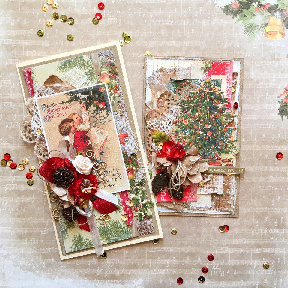 Новогодние открытки в стиле Скрапбукинг