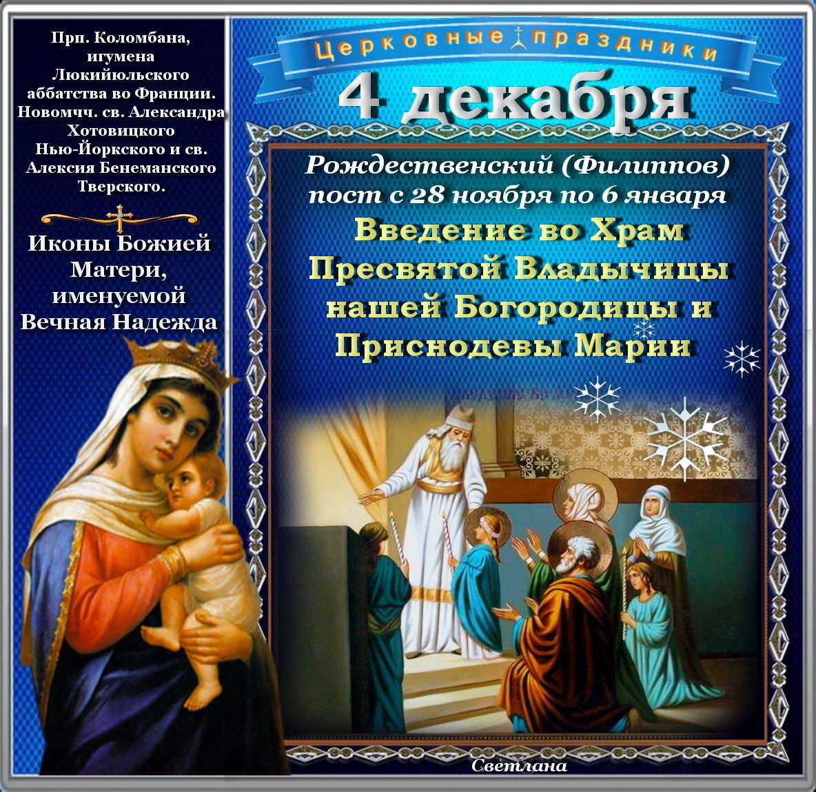 С праздником 4 декабря Введение во храм Пресвятой Богородицы