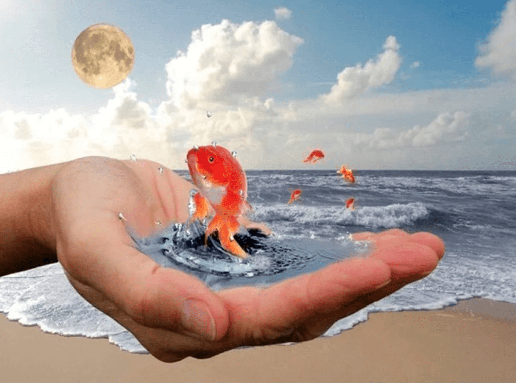 ![Золотая рыбка в руках]()