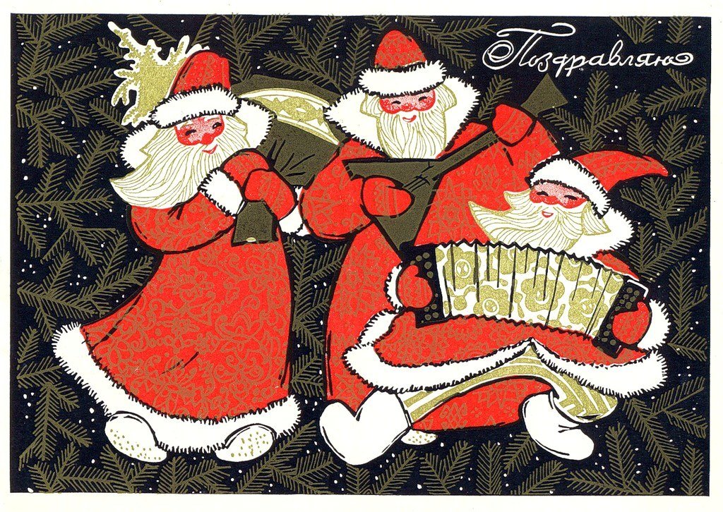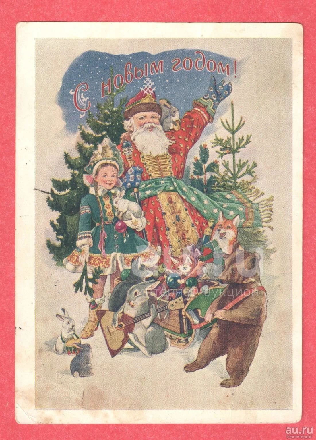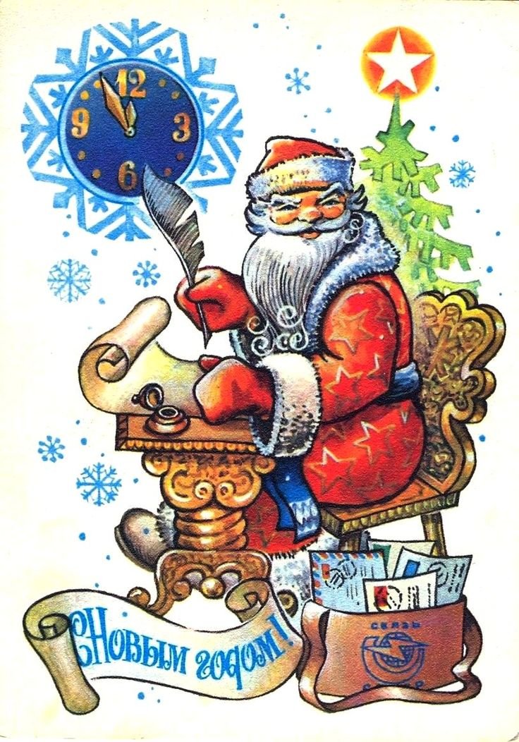 Новогодние открытки с дедом Морозом и Снегурочкой