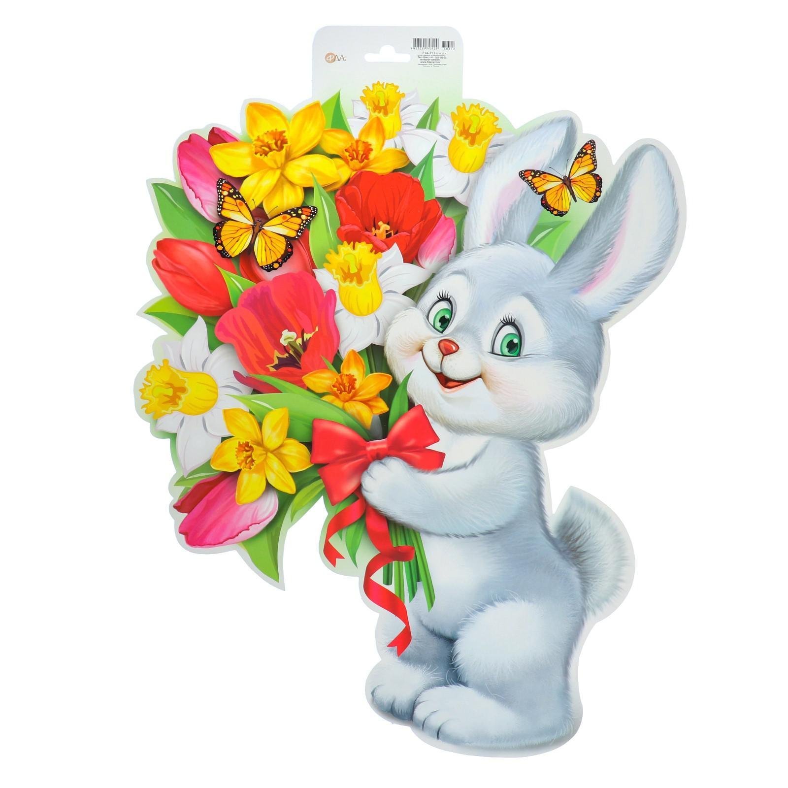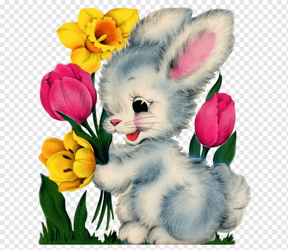 ![Зайчик с цветами]()