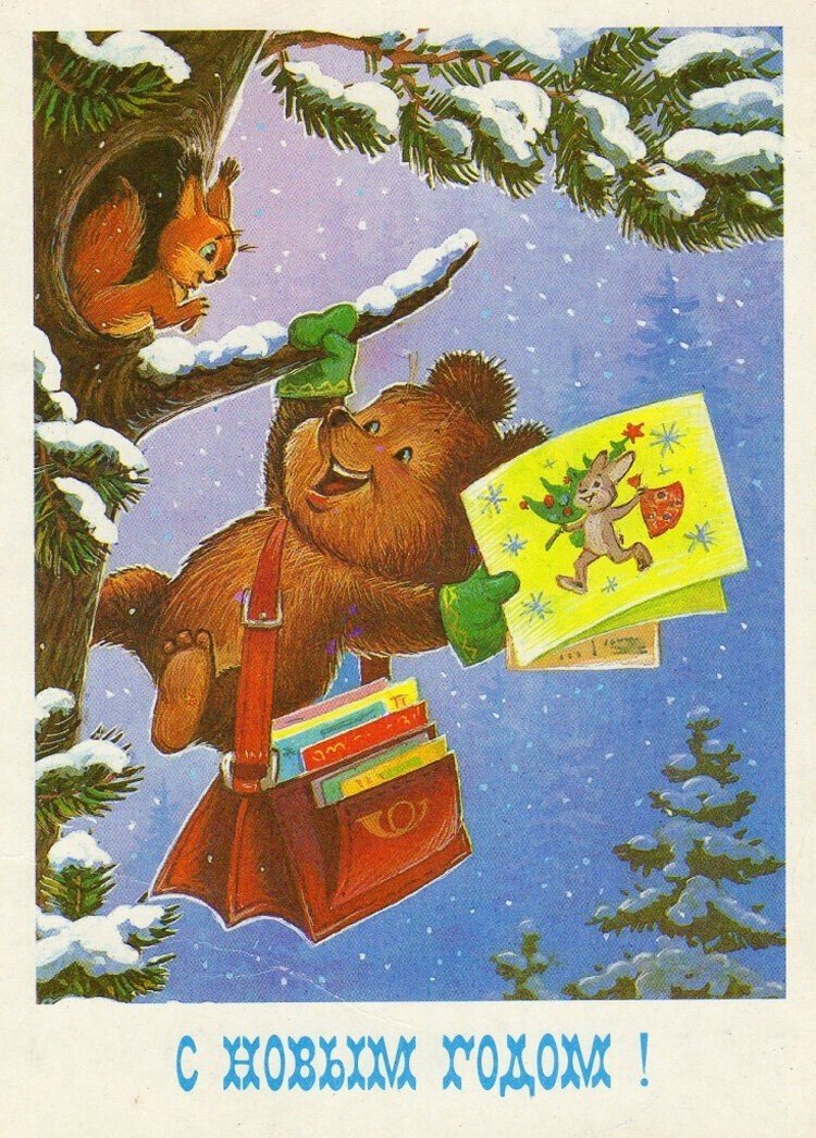 ![Открытки СССР новогодние художник Владимир Зарубин]()