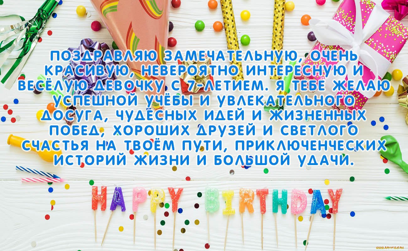 Открытка 7 лет девочке - это прекрасный способ выразить свои поздравления и пожелания маленькой юной имениннице. Ведь седьмой день рождения - это особая дата, когда малышка становится на ещё один шаг ближе к взрослой жизни. С такой открыткой можно передать не только самые теплые слова, но и свою любовь и заботу. Она может быть украшена яркими цветами, изображениями сказочных героев или просто быть оформлена в стиле, который нравится имениннице. Подарите ей эту открытку и наполните ее волшебством и радостью, чтобы она запомнила этот день на всю жизнь.