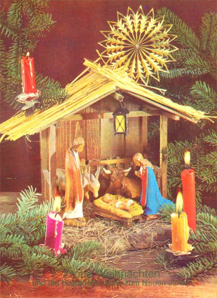 ![Рождественская открытка вертеп]()