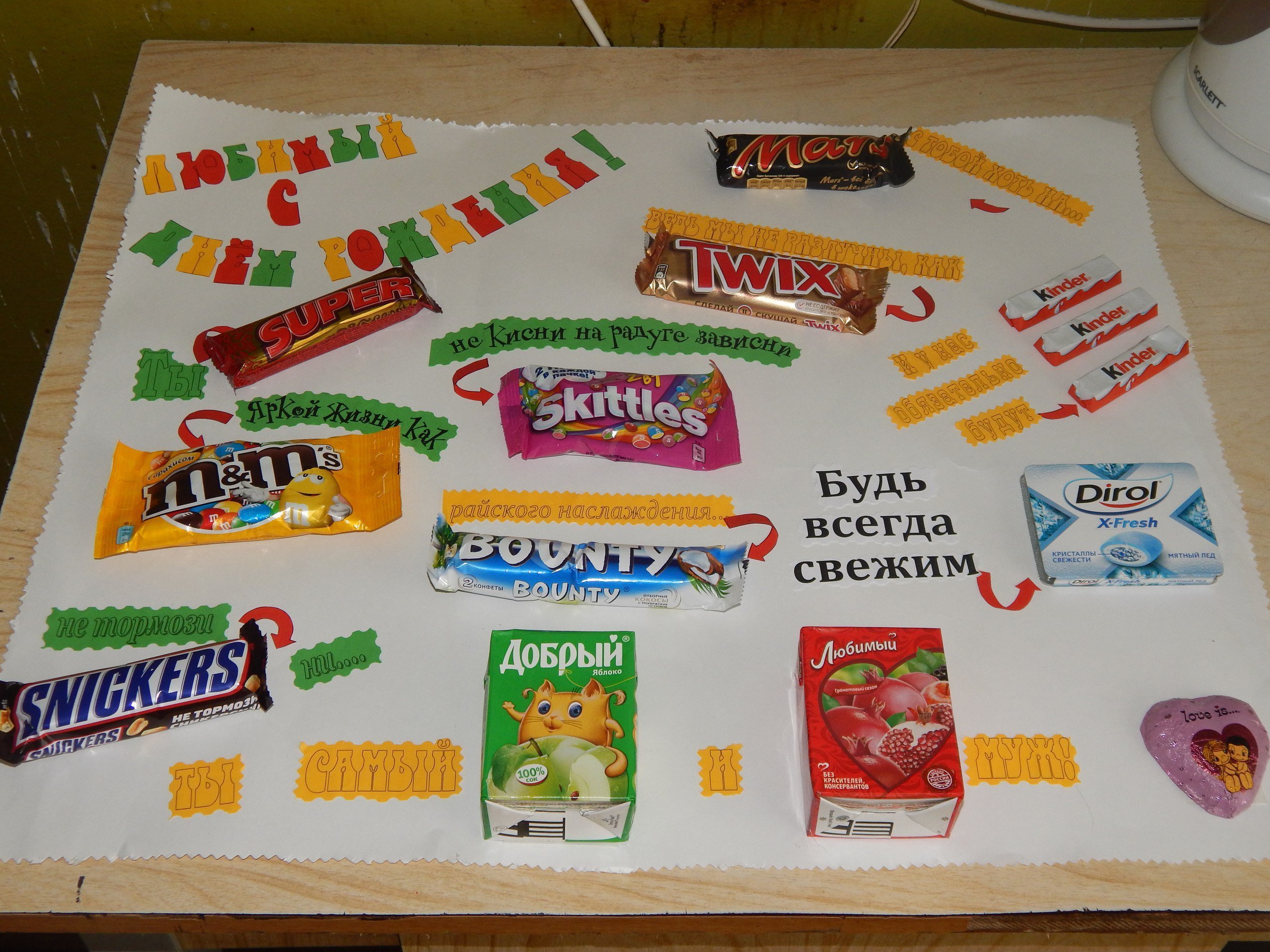 Поздравление на плакате со сладостями