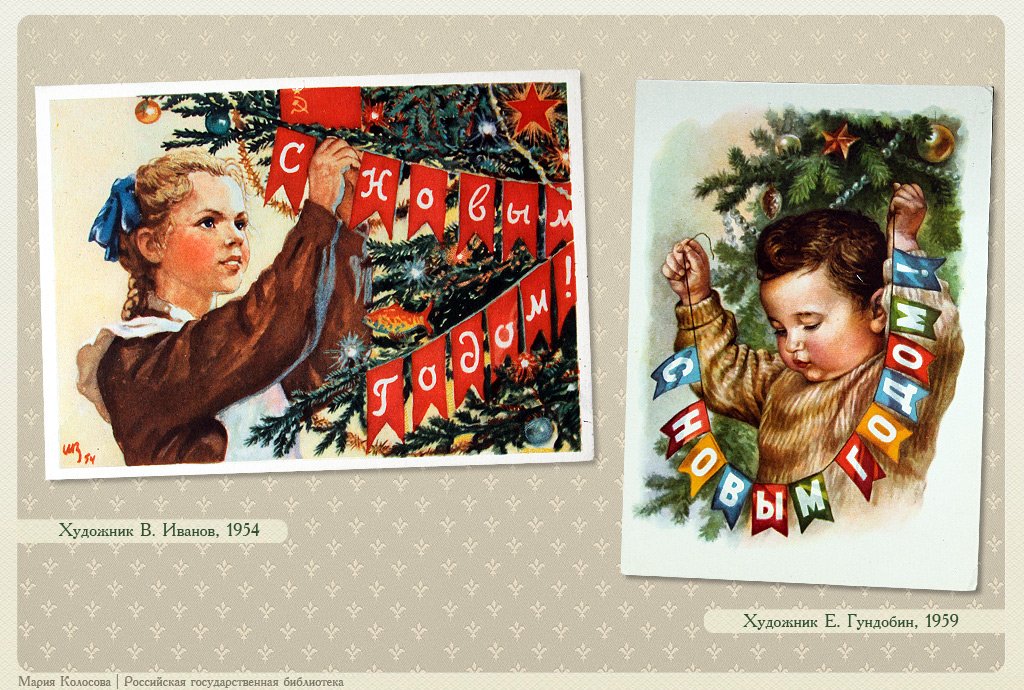 ![Советские новогодние открытки]()