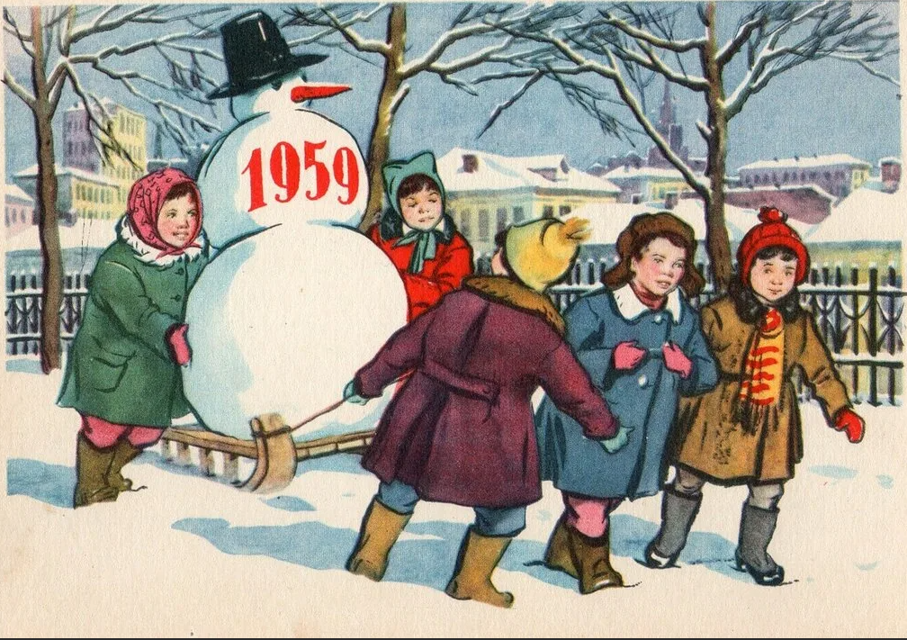 ![Новогодняя открытка 1950]()