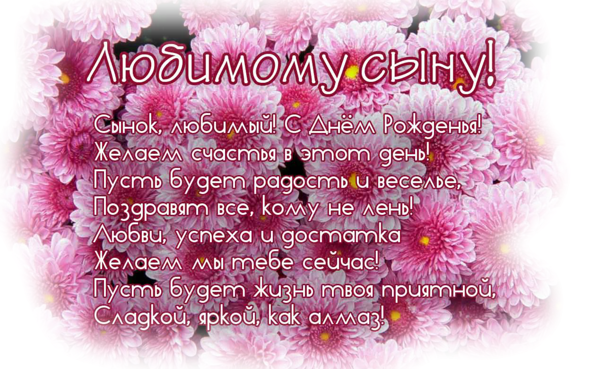 Особенная открытка для самого любимого сына! Эта нежная и трогательная открытка наполнена теплом и благодарностью за то, что ты есть в моей жизни. Каждое слово на этой открытке написано с любовью и заботой, чтобы ты чувствовал всю мою поддержку и гордость за тебя. Ты - уникальный человек, с яркой индивидуальностью и большими мечтами. Я верю в тебя и всегда буду рядом, чтобы поддержать тебя в любых начинаниях. Пусть эта открытка станет твоим символом счастья и вдохновения, напоминанием о том, что ты всегда можешь рассчитывать на меня. С днем рождения, сынок! Искренне люблю тебя!