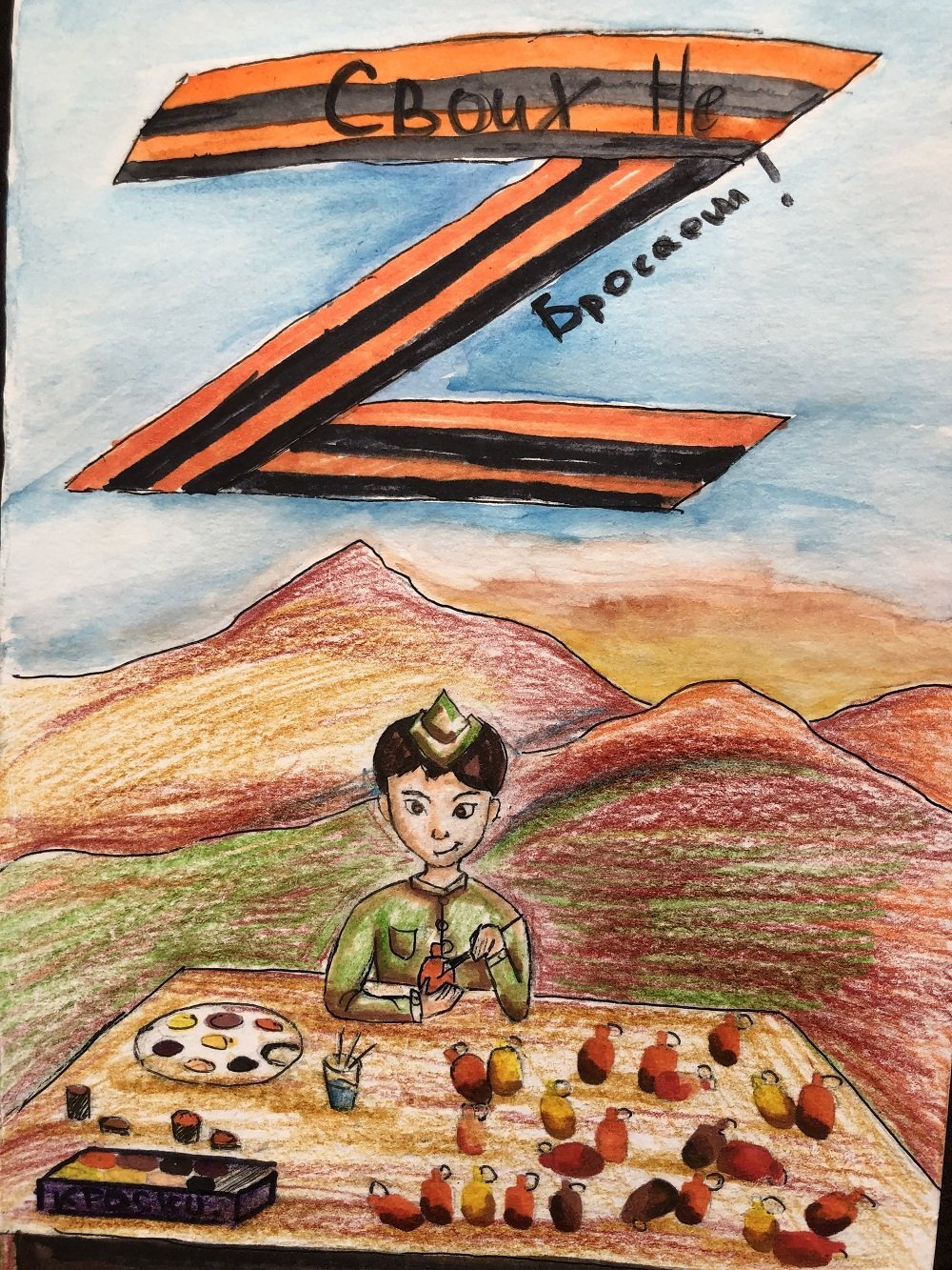 ![Рисунки в поддержку российских войск]()
