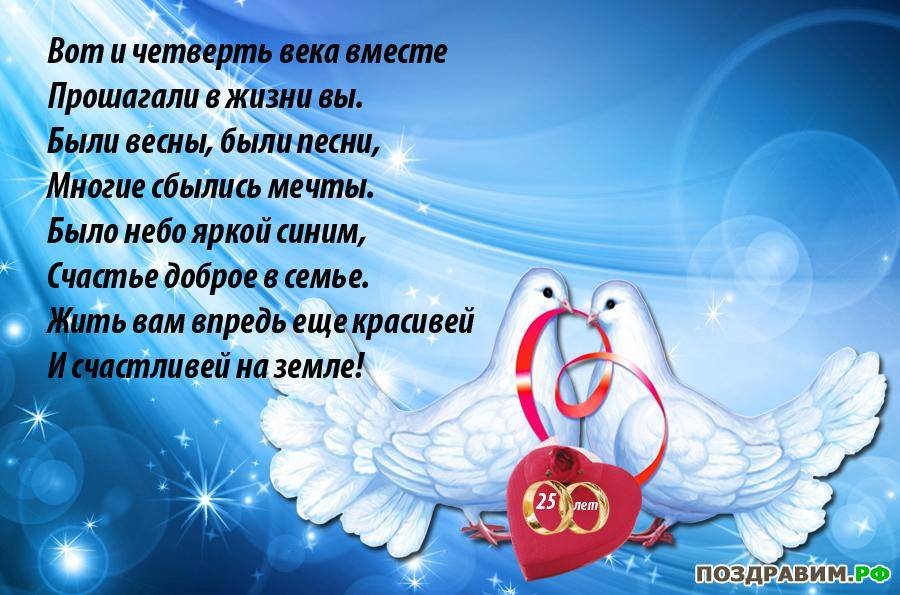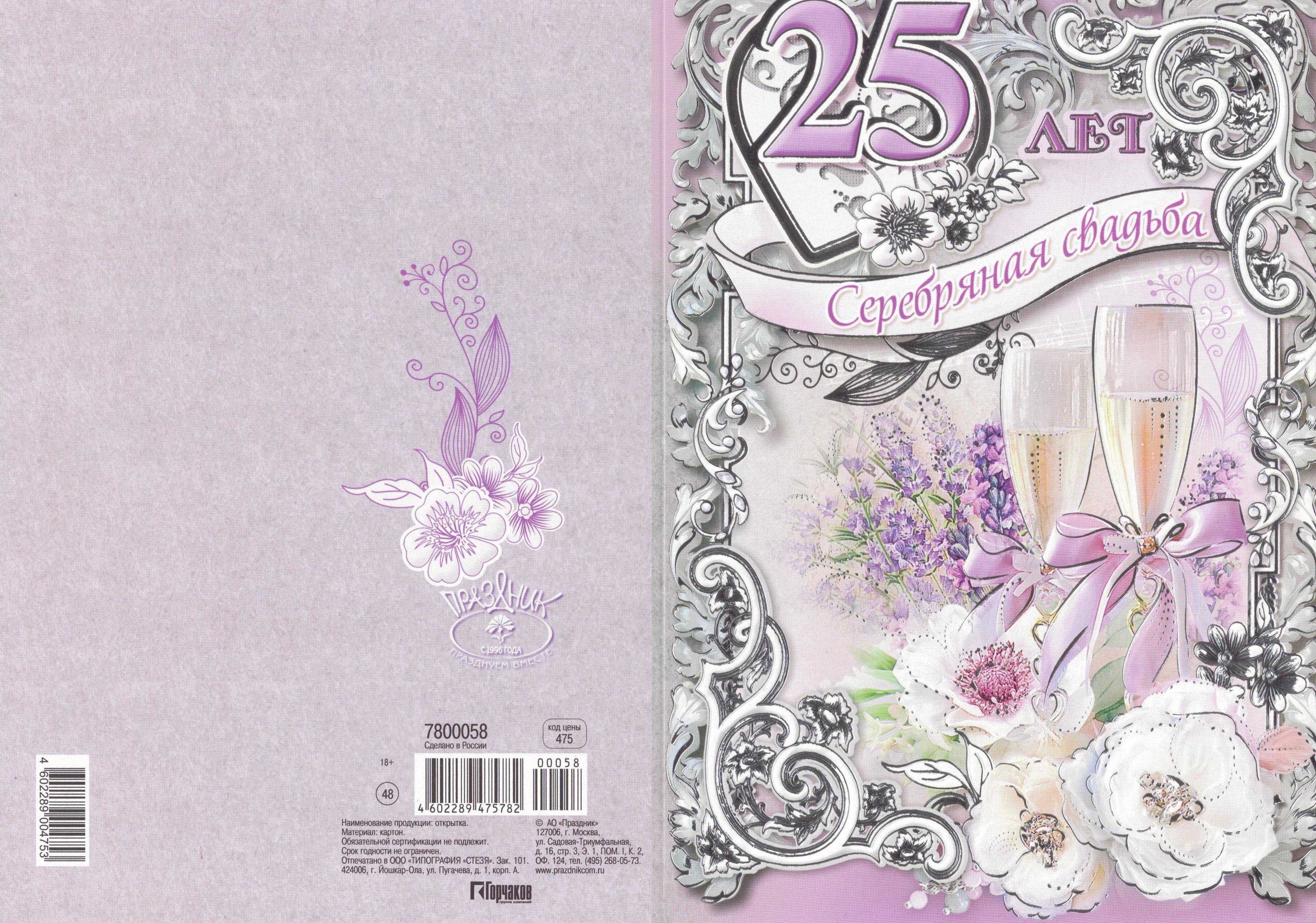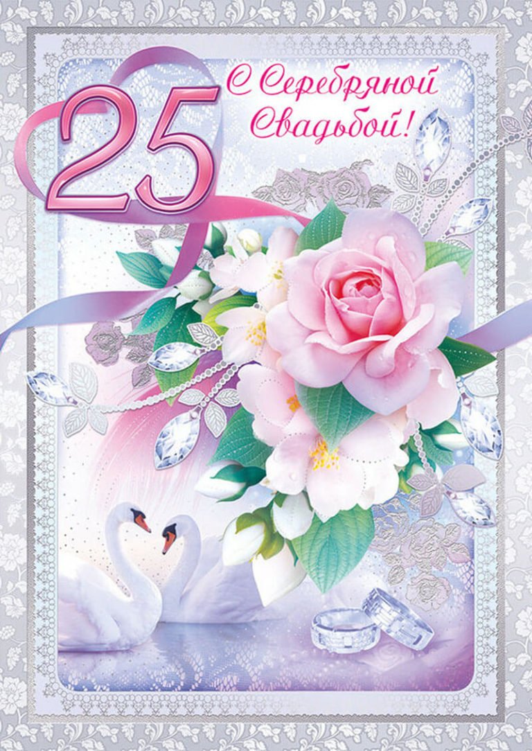 Серебряная свадьба – это особый и значимый юбилей в жизни каждой пары. Отмечая 25-летие совместной жизни, молодожены хотят поделиться своим счастьем и радостью со своими близкими и друзьями. И чтобы эти поздравления были еще более особенными и запоминающимися, мы предлагаем вам наши эксклюзивные открытки для серебряной свадьбы. Нежный блеск серебра и изысканный дизайн делают каждую открытку уникальной и выразительной. Удивите и порадуйте юбиляров их самым ярким и оригинальным поздравлением, выбирая наши открытки для серебряной свадьбы.