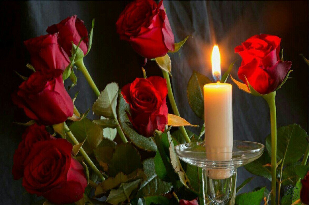 ![Траурные розы и свечи]()