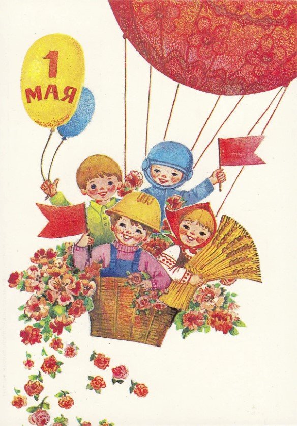 ![C 1мая мир труд май советские открытки]()
