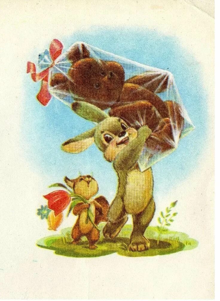 ![Зайчик открытка СССР]()