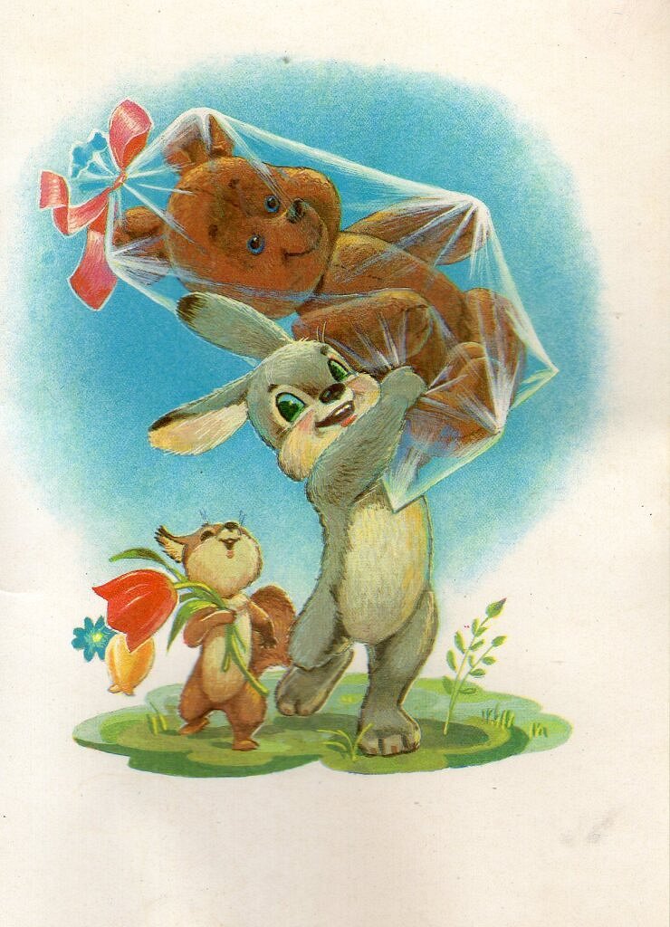 ![Советская открытка Медвежонок и Зайка Зарубин]()