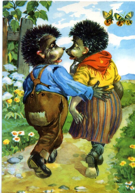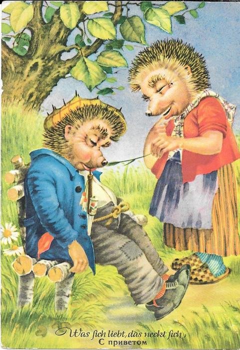![Немецкие открытки с ежиками]()
