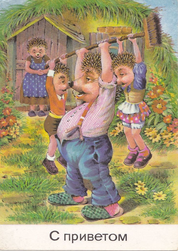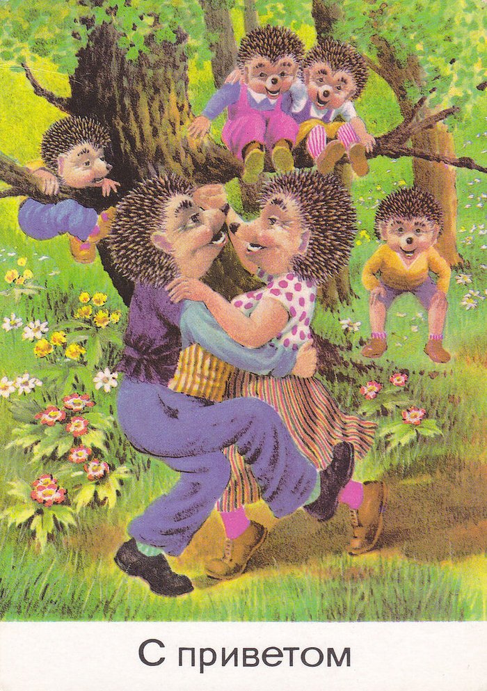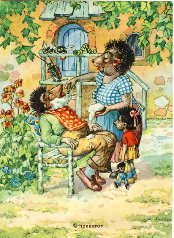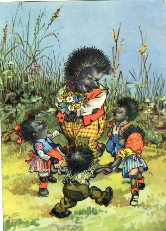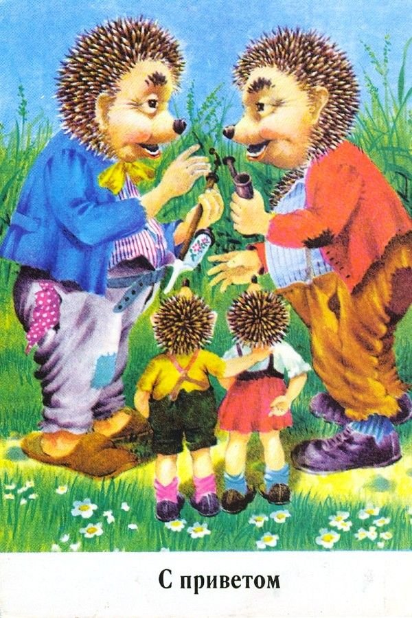 ![Открытки с ежиками ГДР семья]()