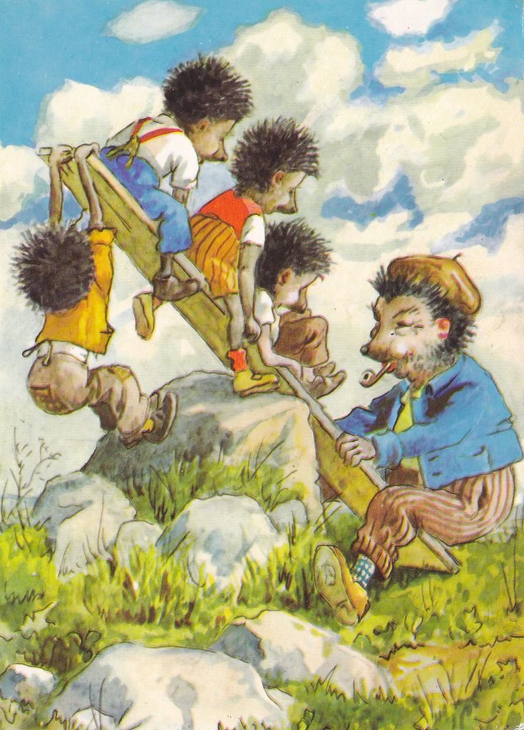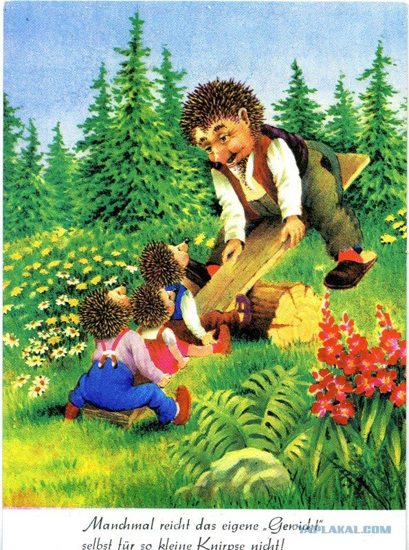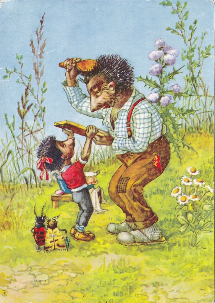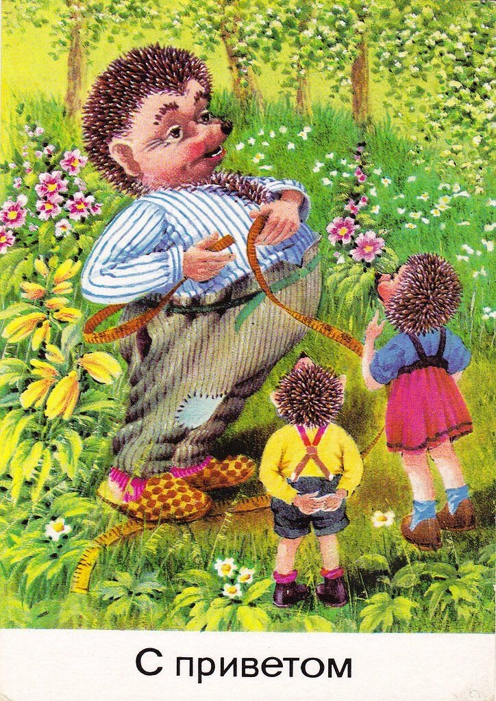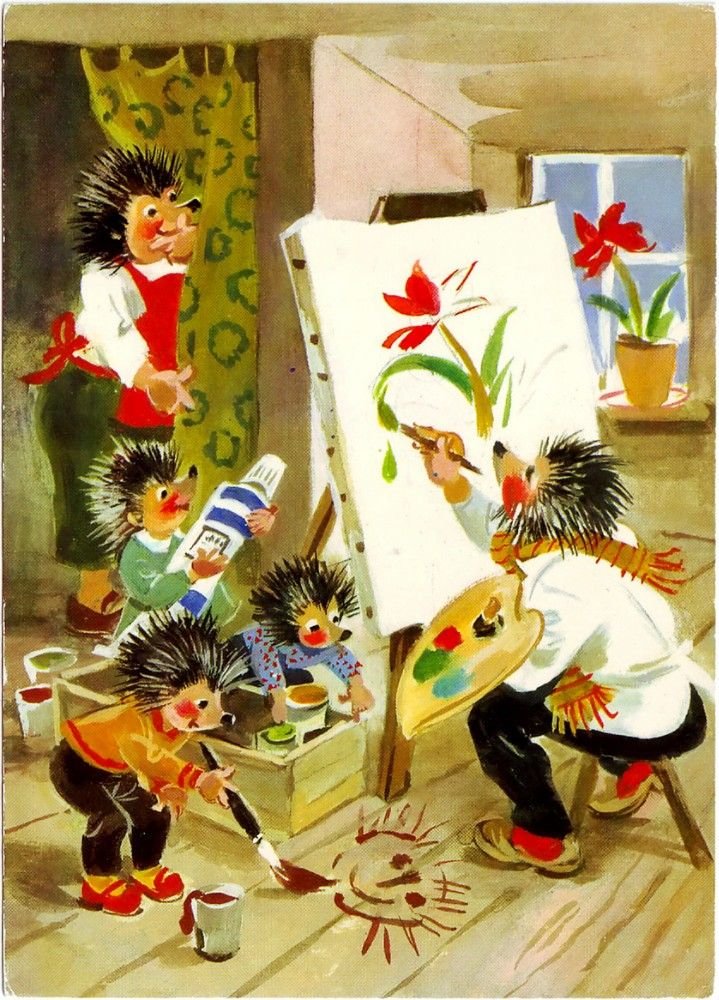 ![Открытки с ежиками ГДР семья]()