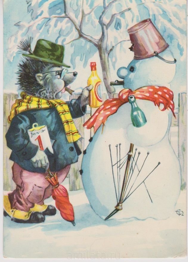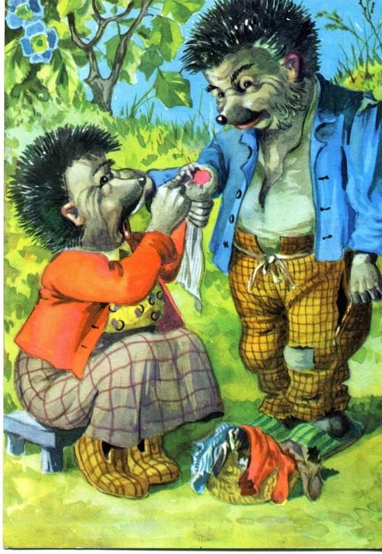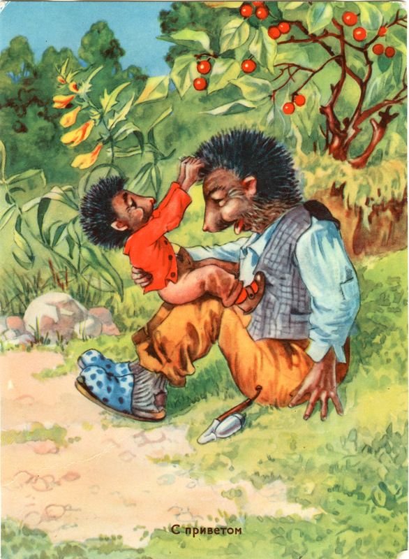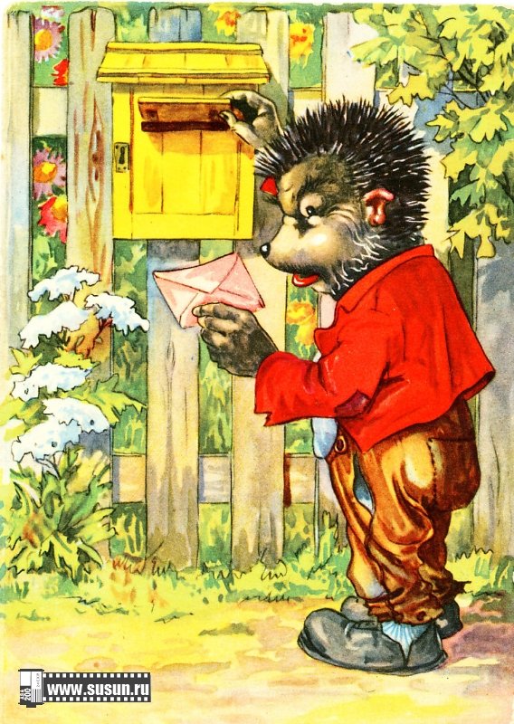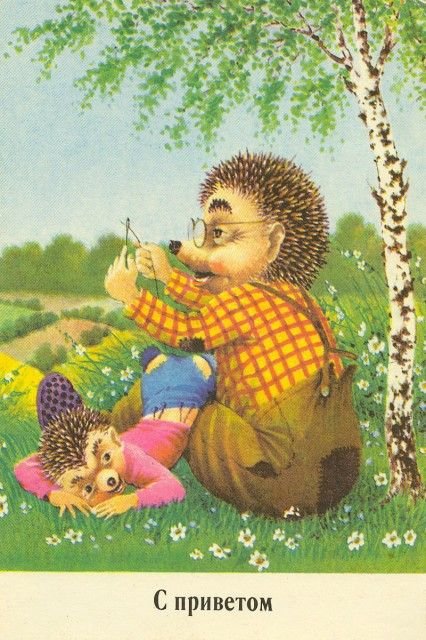 ![Старые открытки с ежиками]()