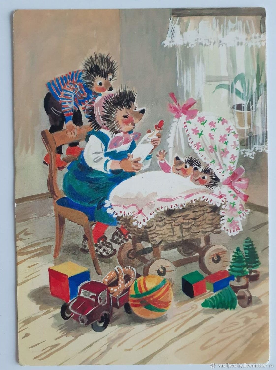 Открытки с ежиками ГДР семья