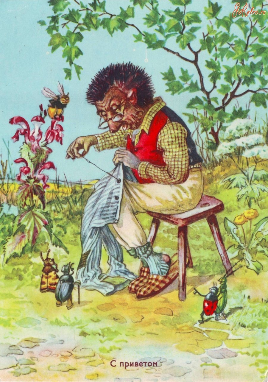 Старые открытки с ежиками