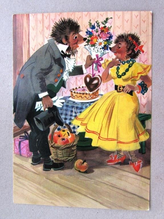 ![Открытки с ежиками ГДР]()