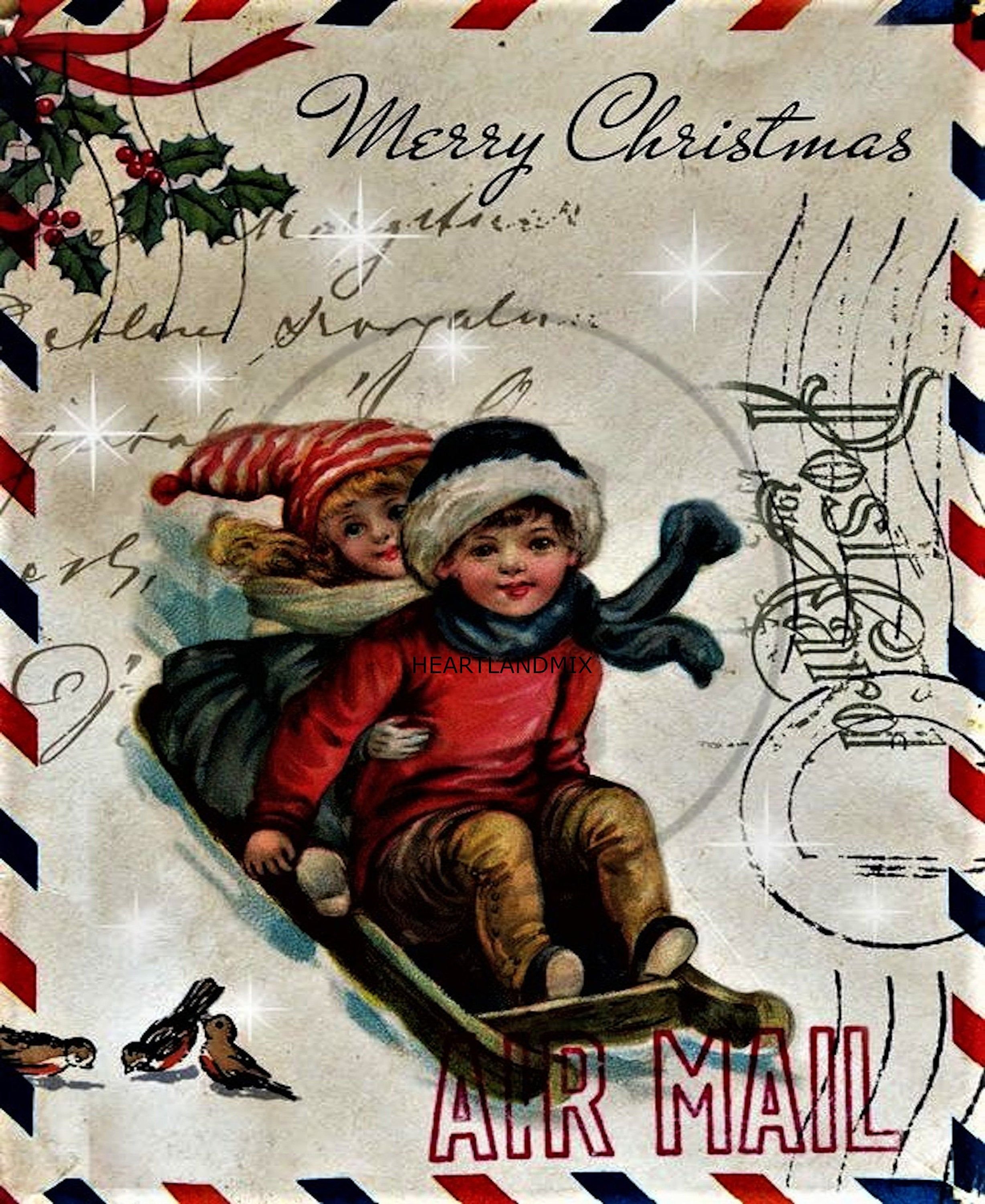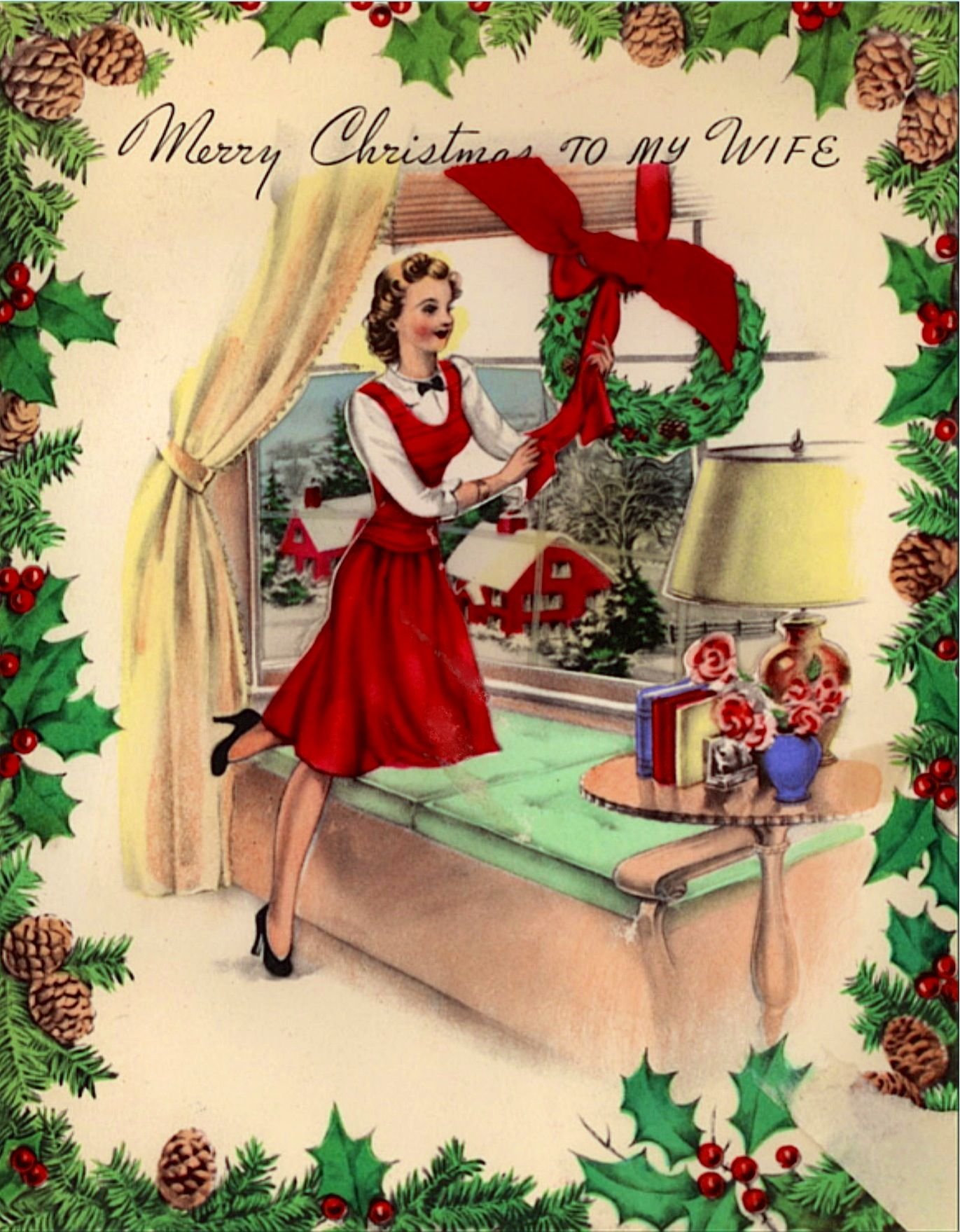 ![Рождественская открытка в стиле ретро]()