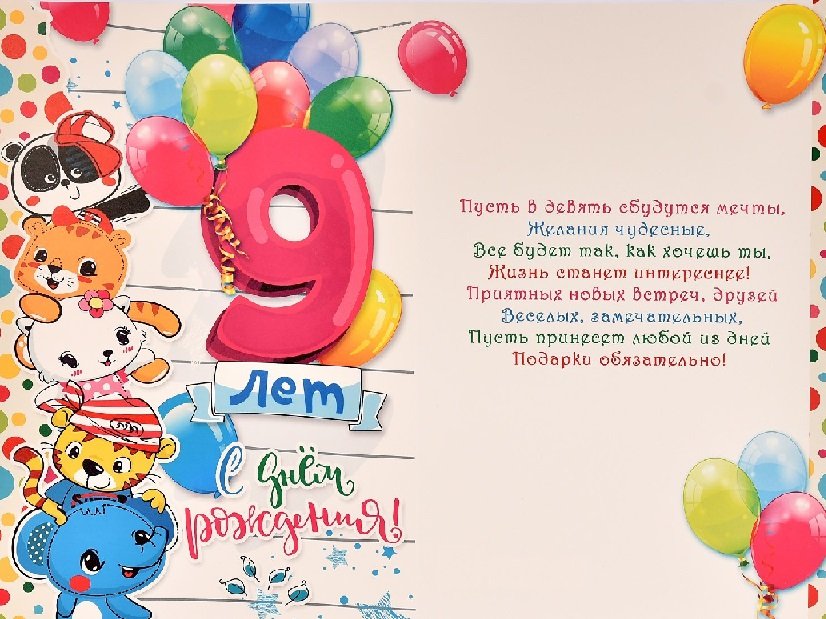 В поисках идеальной открытки для девочки 9 лет? Поздравить юную именинницу никак не хватит слов, чтобы выразить всю радость и восхищение, которыми она наполняет жизнь своим присутствием. Наша коллекция открыток специально создана для создания незабываемых моментов в ее жизни. От ярких и красочных картинок до нежных и милых иллюстраций - у нас есть открытка, которая точно подойдет для поздравления с днем рождения или другим особенным событием. Выбирайте открытку, наполняйте ее теплыми пожеланиями и делайте этот день незабываемым для девочки 9 лет!