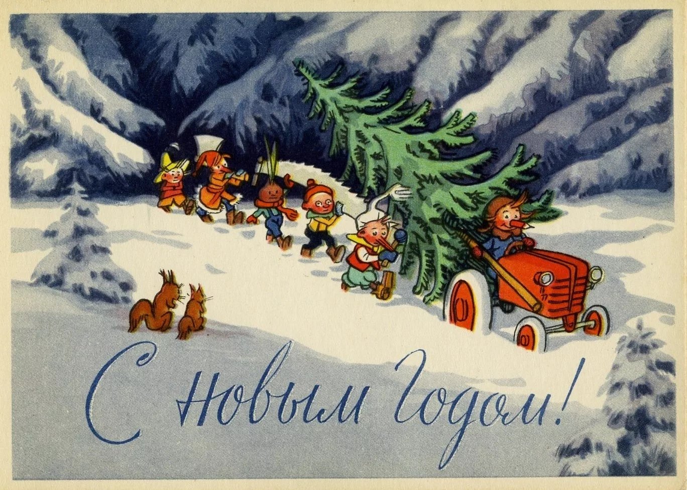 ![Новогодние открытки художника Владимира Ивановича Зарубина]()