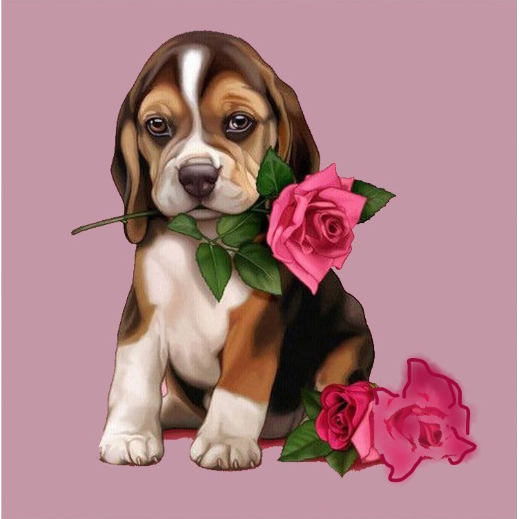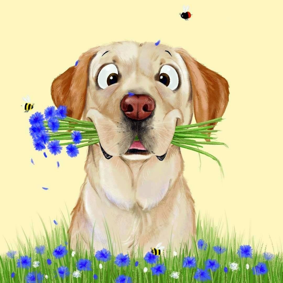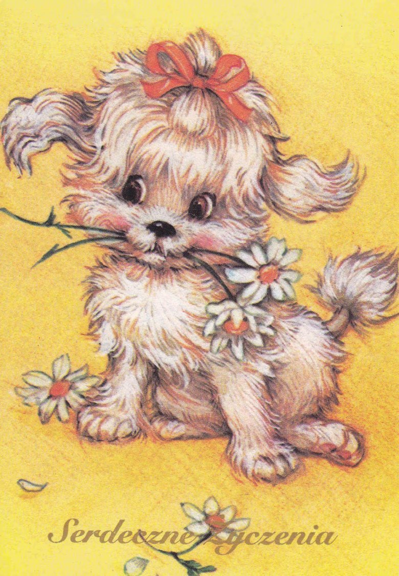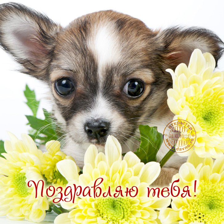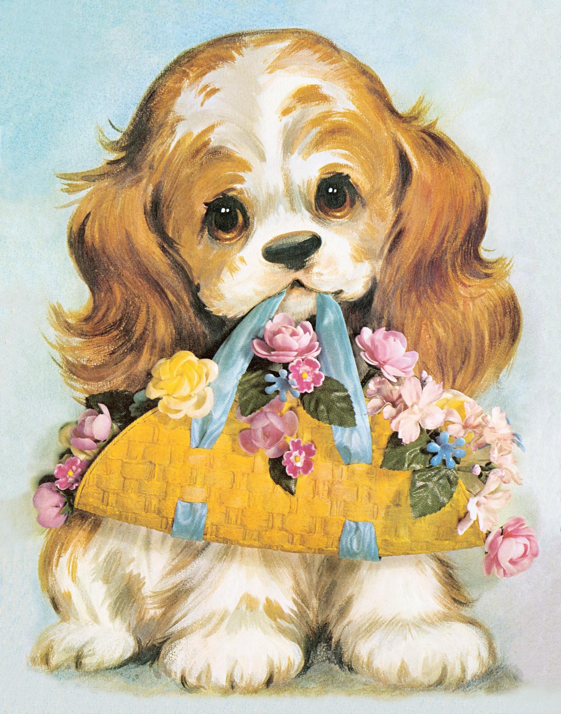 Открытки собачки с цветами